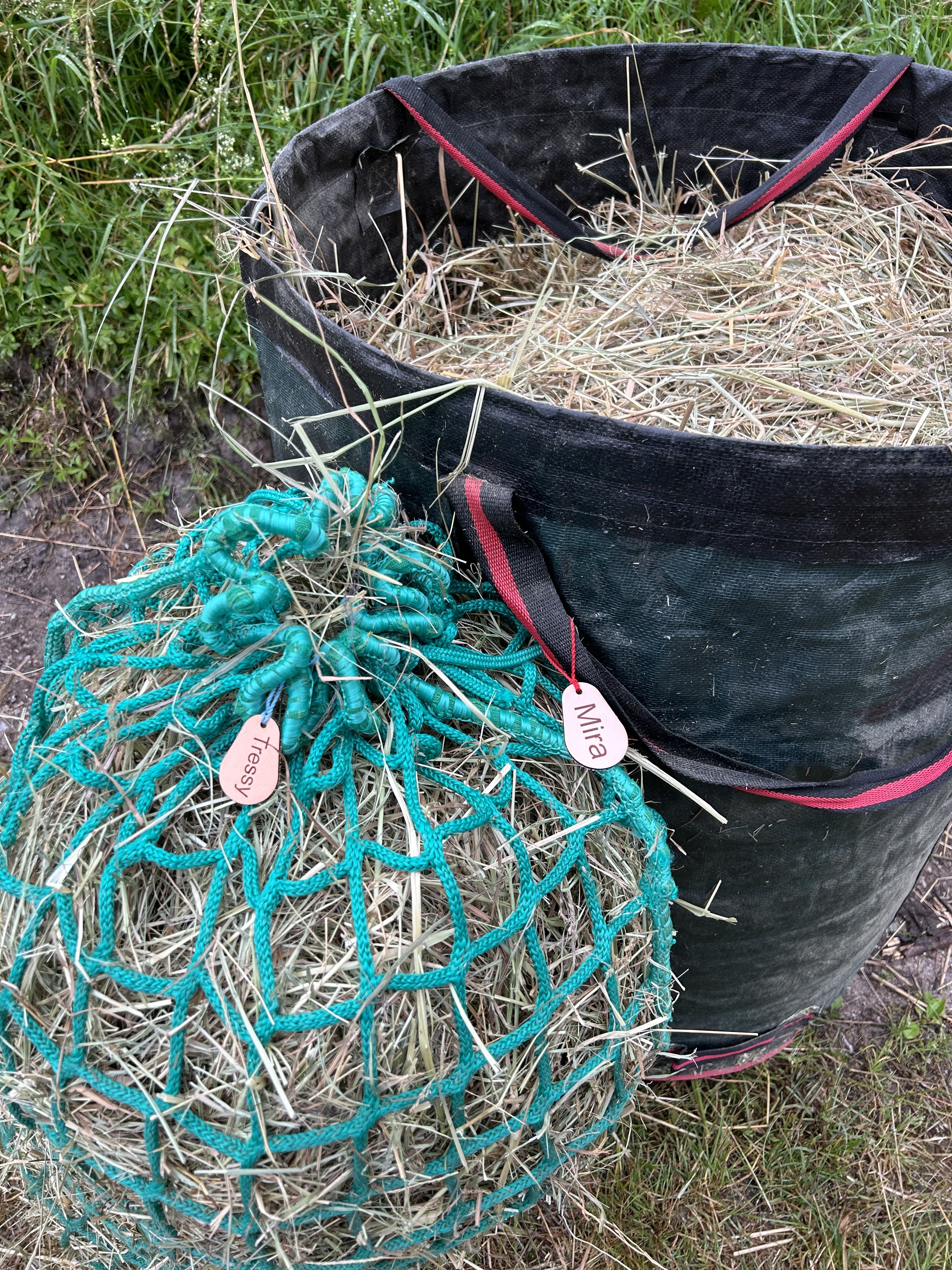 Mit diesen Anhängern aus echtem Leder wissen alle in deinem Stall, welches Netz für welches Pferd vorgesehen ist. Du kannst auch Tageszeiten wie Morgens, Mittag und Abends in der zweiten Zeile angeben. Das ist besonders nützlich, wenn du die Netze vorbereitest und jemand anderes dein Pferd füttert!