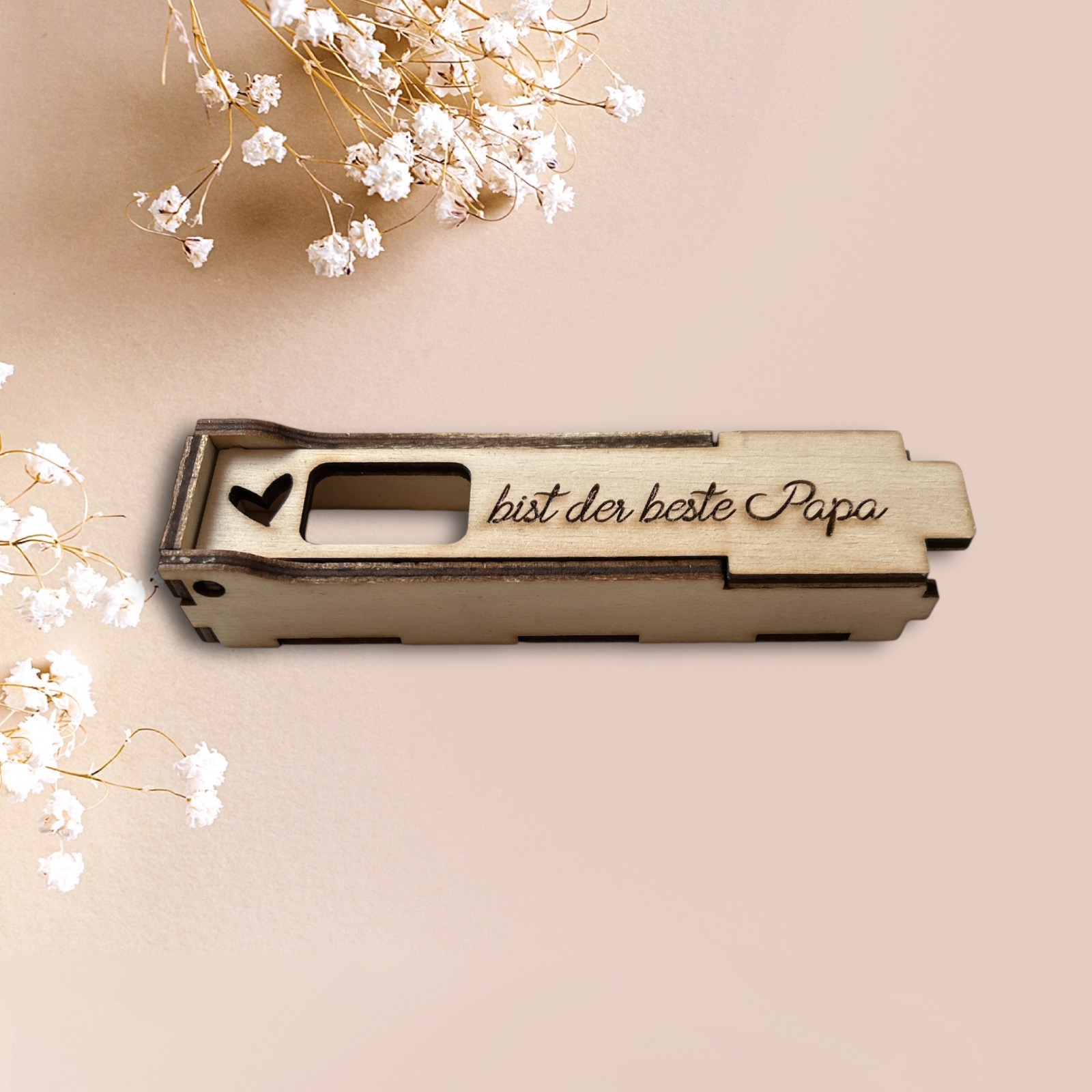 Da es sich bei dem Holz um ein Naturprodukt handelt, können sich Unterschiede in der Farbe, Maserung, der Tiefe und in der Helligkeit der Gravur ergeben. Auch Schmauchspuren lassen sich nicht vermeiden.