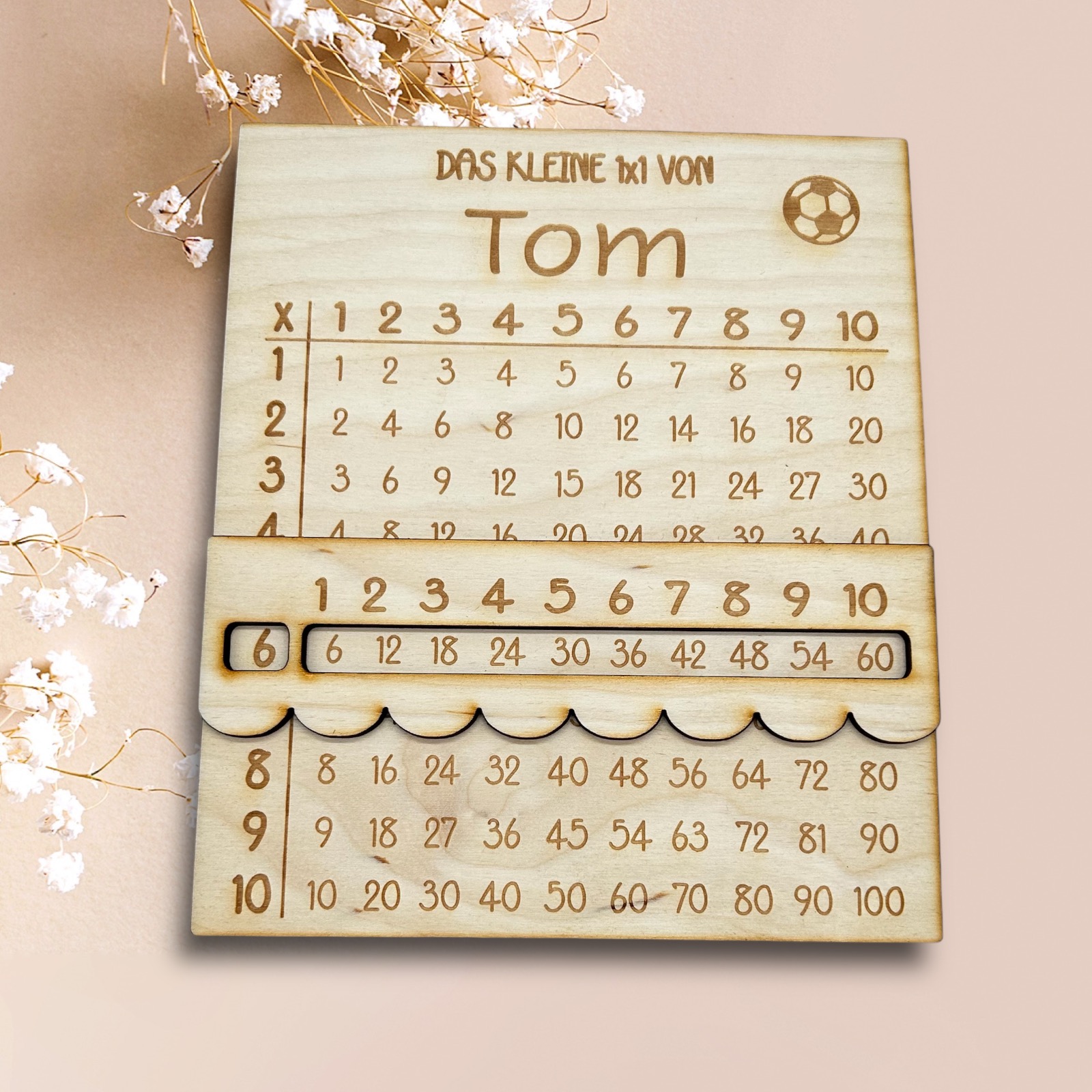 Ein schönes, sinnvolles Geschenk zur Einschulung: Mit dem Lernbrettchen lernen und verinnerlichen Schulkinder das kleine 1x1. Auf Wunsch kann das Brettchen mit einem Namen personalisiert werden.