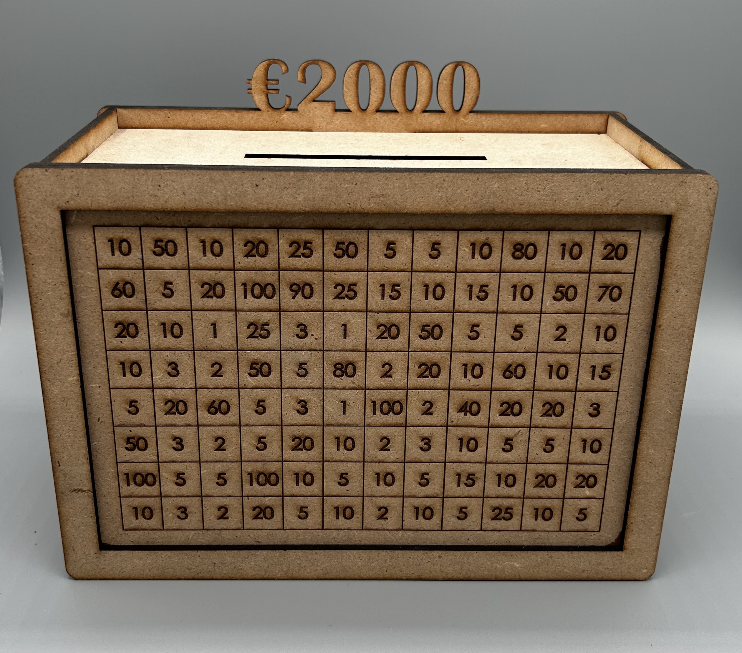 Material: MDF, auf Wunsch kann auch die Spardose auch aus z.B. Acrylglas hergestellt werden.