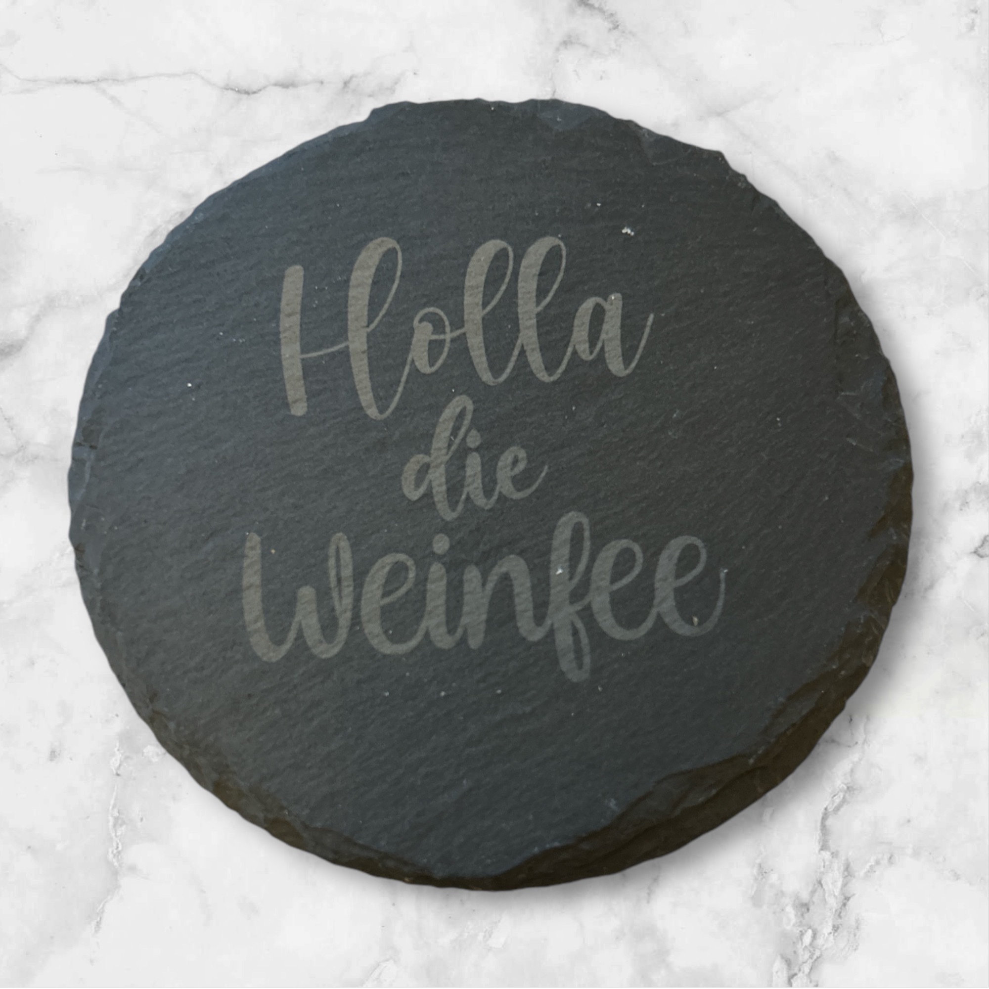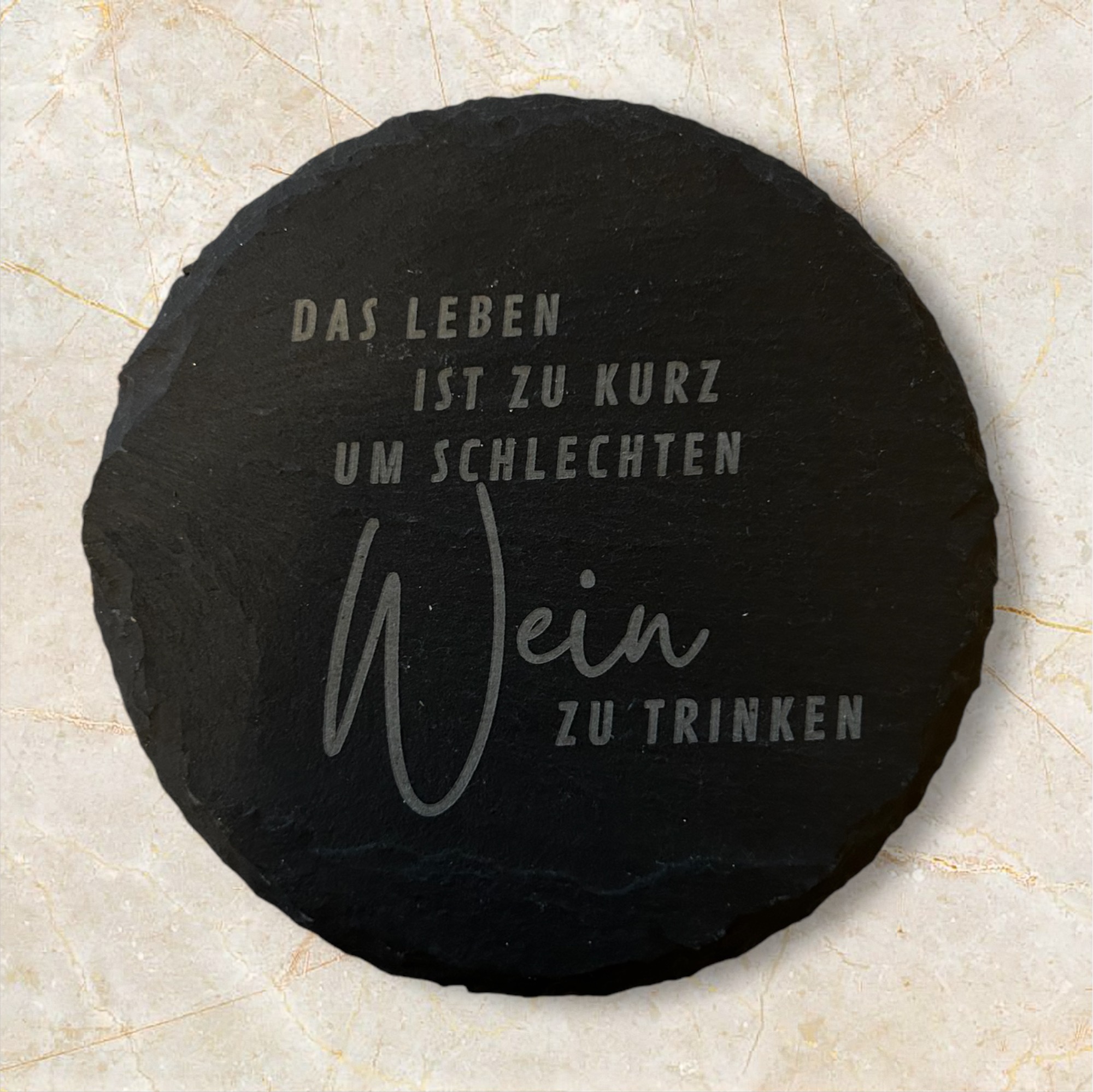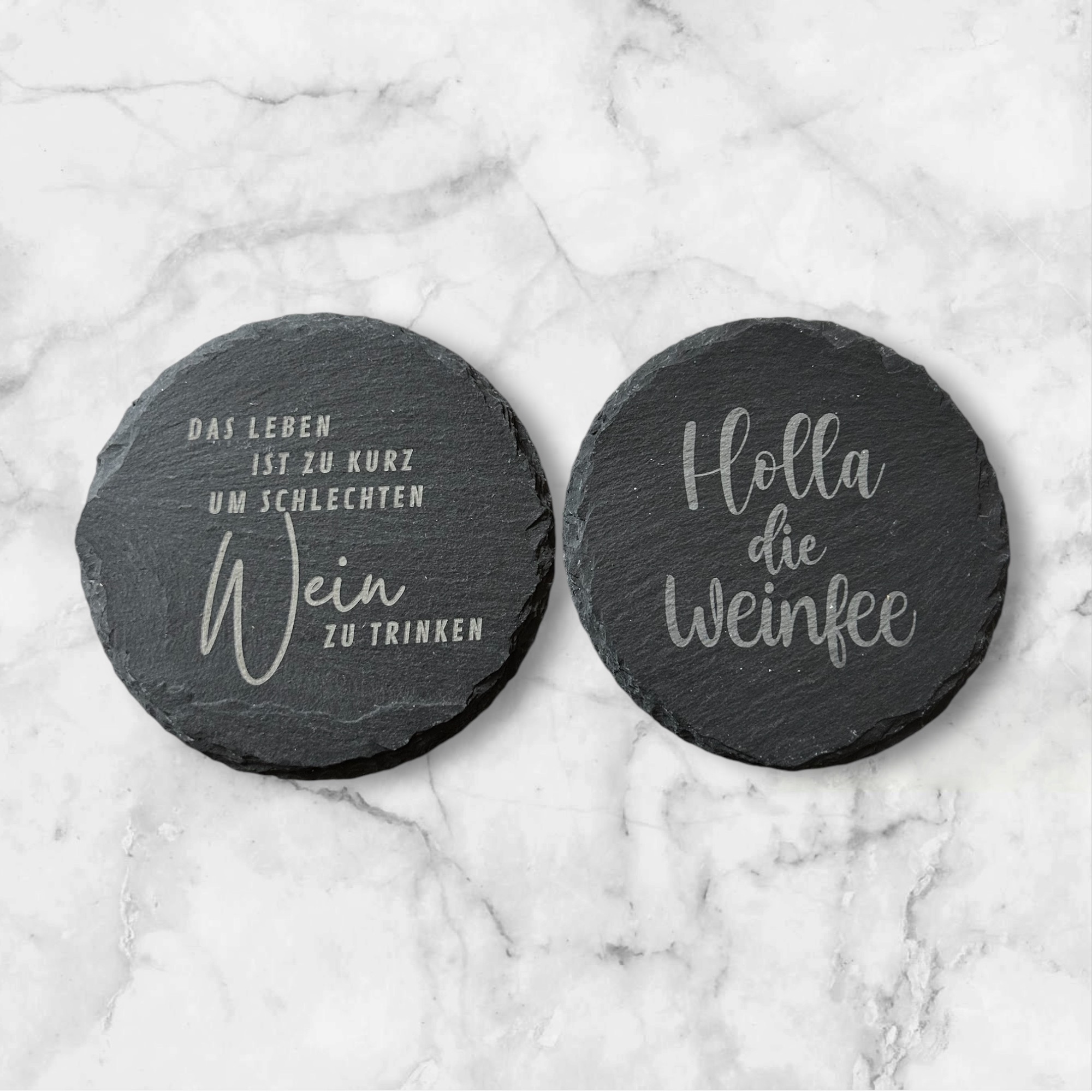 Die Untersetzer bestehen aus Schiefer, einem natürlichen Material, das aufgrund seiner Beschaffenheit jeden Untersetzer etwas unterschiedlich gestaltet.